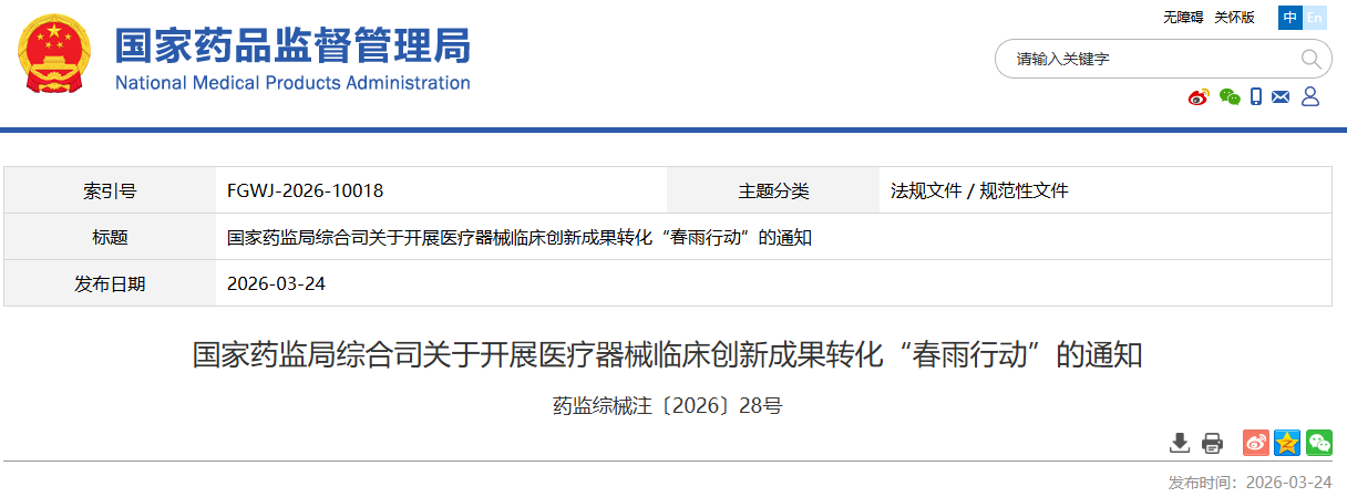 国家药监局大量促进创新医疗器械发展,并发布创新成果转化“春雨行动”