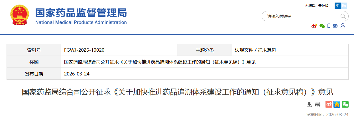 药监局发布《关于加快推进药品追溯体系建设工作的通知(征求意见稿)》