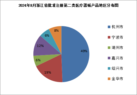 按照注册申请人所在辖区分析,批准注册的81个医疗器械产品中,杭州市40个,宁波市15个,湖州市5个,嘉兴市10个,绍兴市5个,金华市6个。