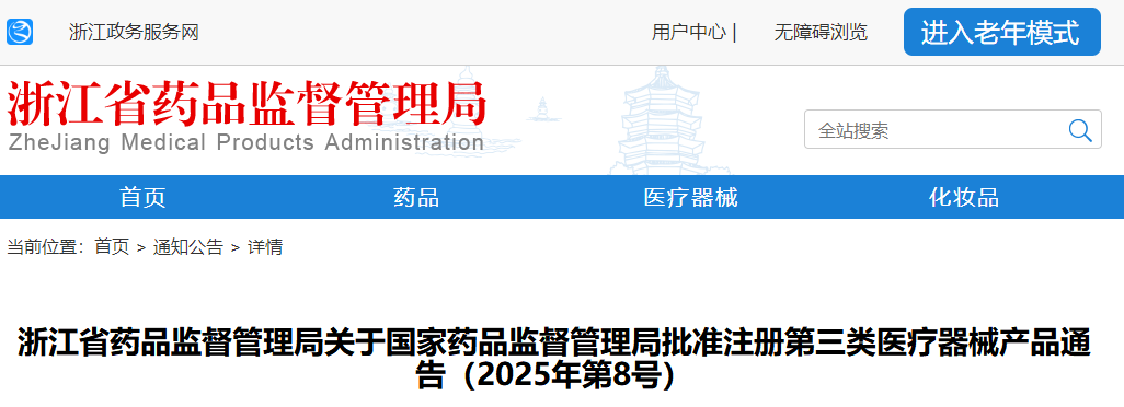 浙江省25年7月获得国家局批准注册第三类医疗器械产品27个(附名单)