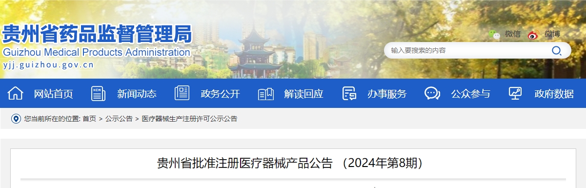 贵州省2024年8月批准注册3个首次第二类医疗器械产品(附名单)