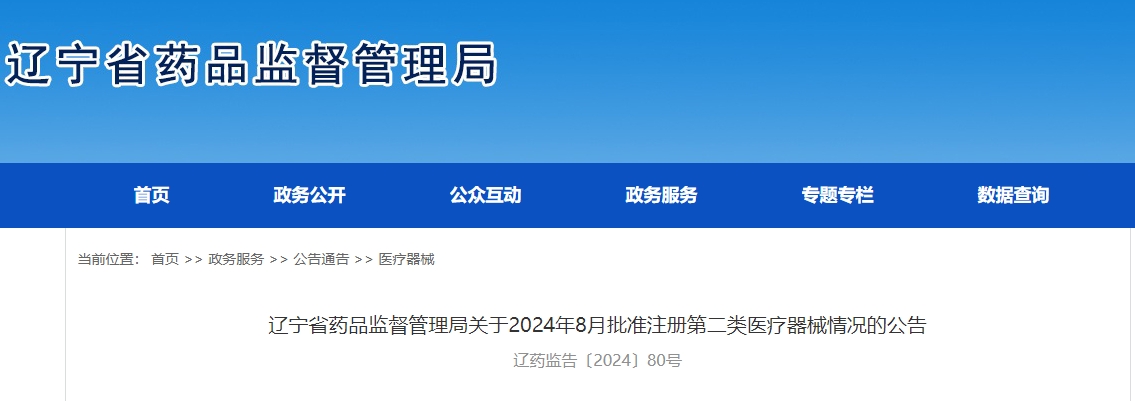 辽宁省2024年8月批准注册第二类医疗器械产品(附名单)