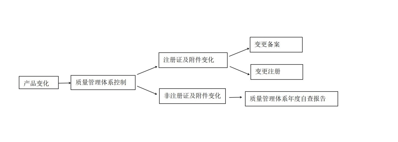 体外诊断试剂发生变化均应通过质量管理体系进行控制,如涉及医疗器械注册证及其附件载明的内容发生变化,需进行变更备案或变更注册(图1)。