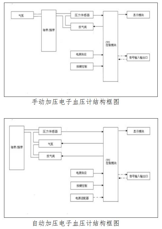 电子血压计的加压方式(充气机制)可分为:手动加压和自动加压。